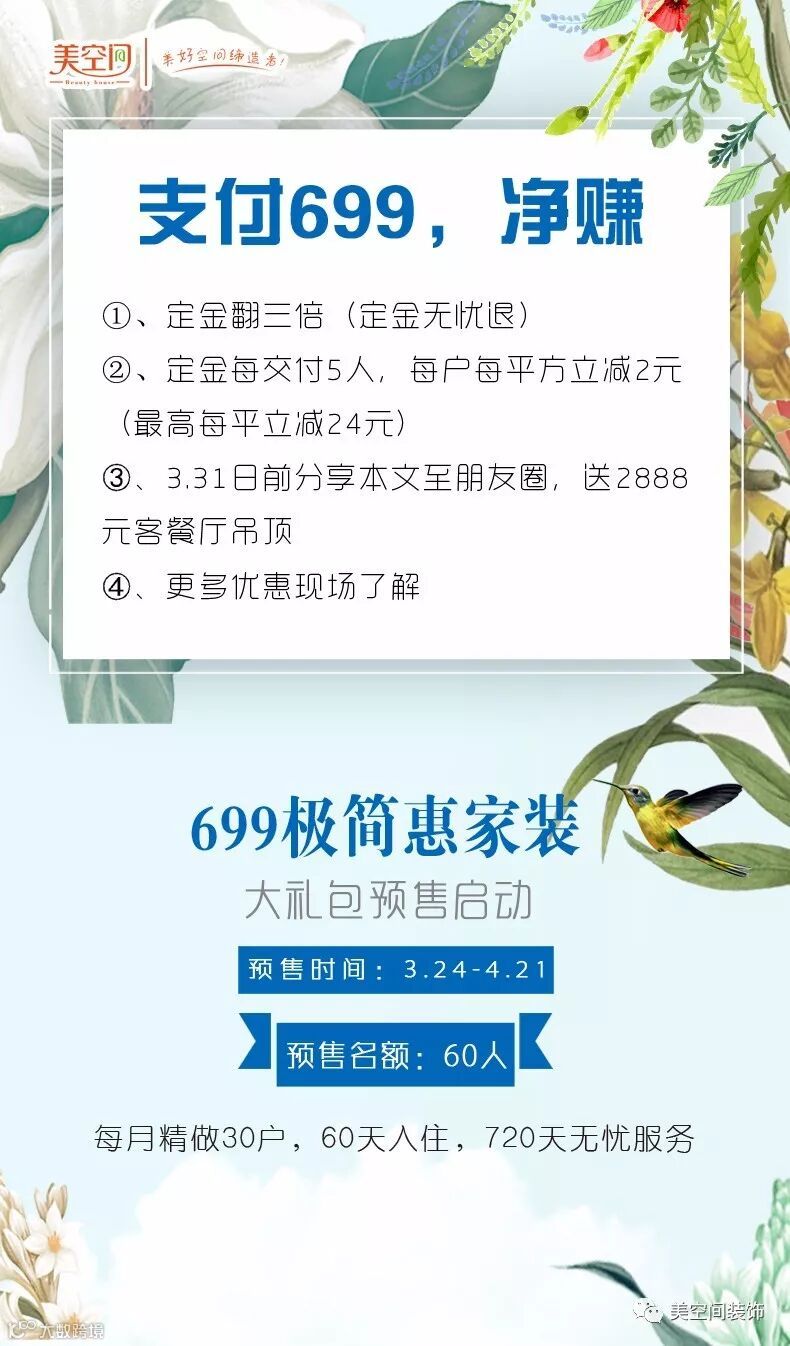 每月精做30户,从毛坯到精装只需699/平