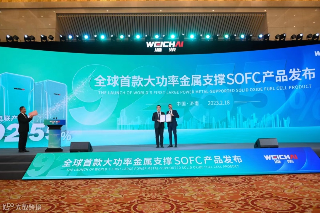 2月18日,潍柴动力再次在世界舞台拔得头筹,发布全球首款大功率金属支撑商业化SOFC(固体氧化物燃料电池)产品。这款产品系统功率30kW/120kW,以92.55%的热电联产效率实现全球最高,成就全球重大技术突破。