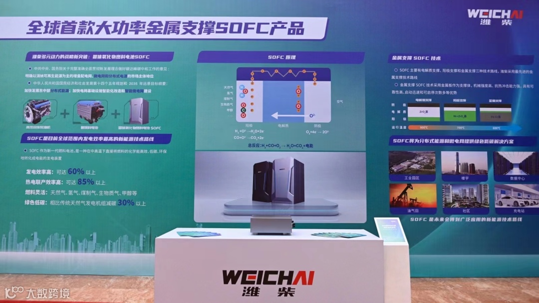 据测算,潍柴SOFC产品作为分布式能源装机容量达到1GW时,相比从电网取电每年可减碳约200万吨,相比传统天然气内燃机发电机组可节约天然气约6亿方;若用生物质气、绿氢作为燃料,可实现零碳排放,助推国家双碳目标落地。