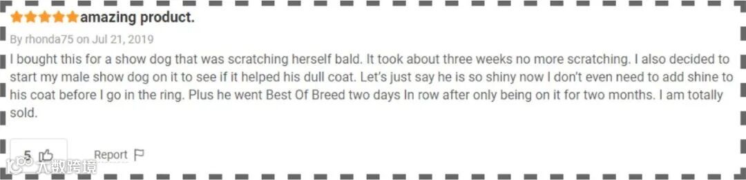 “把自己抓到秃头的狗子,食用三周就不再抓挠!毛发干枯的狗,用了两月后油光发亮,在比赛中获得全场最佳!”