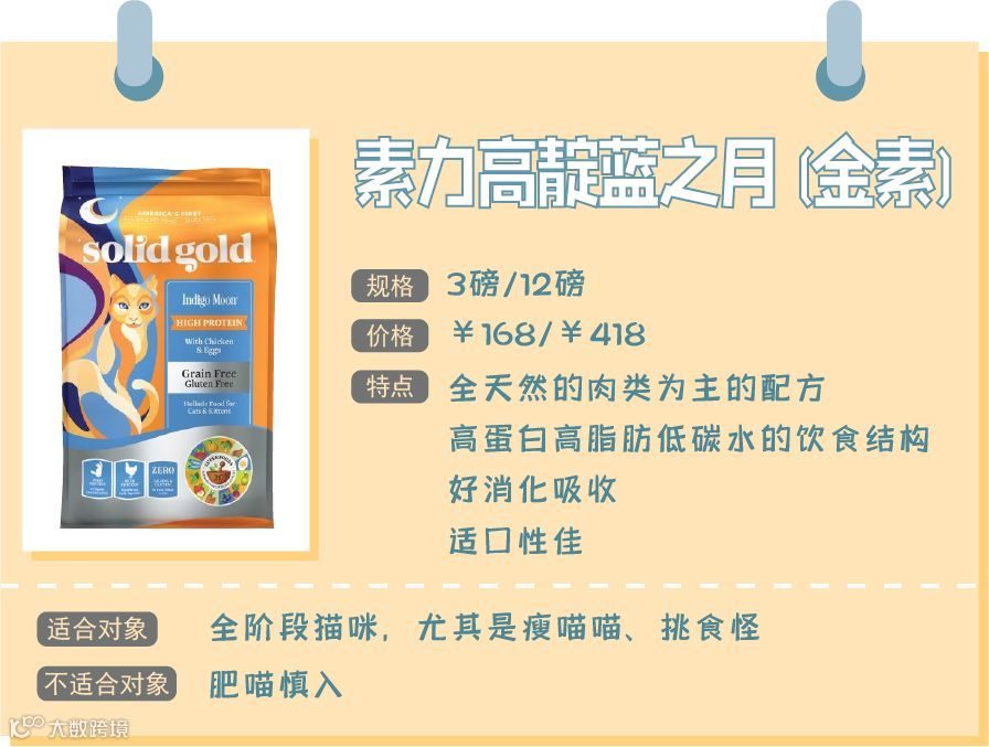 素力高靛蓝之月又称为金素,作为素力高的明星产品,金素不仅是猫咪的“宠儿”,还是进口猫粮的代表,足见其实力过硬。