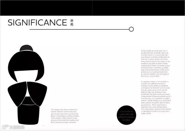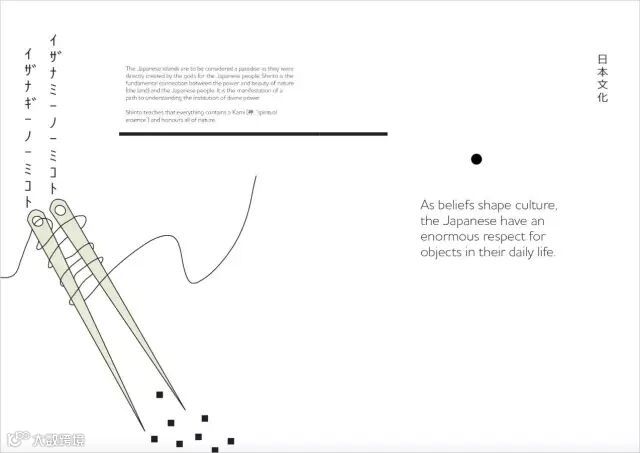 纯黑白色已经很有日本传统色彩的特点,手绘风格的传统元素图标更强化了这一特色,非常具有标识性,并使得画面看起来很有趣味。看过后黑圆点和图标可以留下很深的印象。