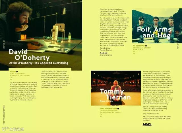 同样是电影节展映手册,这本的风格好像与台湾金马奖差异太大:大胆的画面分割、大量的不规则图形应用,以及浓墨重彩将欧美文化与台湾小清新区别的淋漓尽致。在这里,面的应用主要是以不规则图形为主。胡设计建议各位:能够相对熟练运用点和线的基础上再尝试该风格,虽然很有逼格但真的很需要依赖设计师的经验和水平。。。