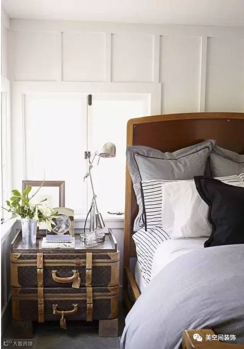 卧室不再千篇一律,而是各有各的舒适。普通床头柜换成了两个叠加的行李箱,个性又实用。