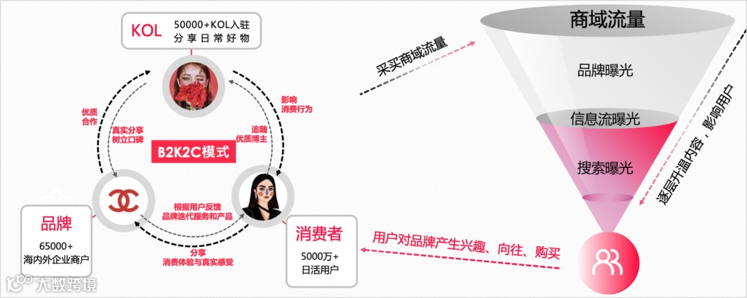 美护客户小红书高效种草模型:B2K2C模式影响力闭环,商域流量放大传播。