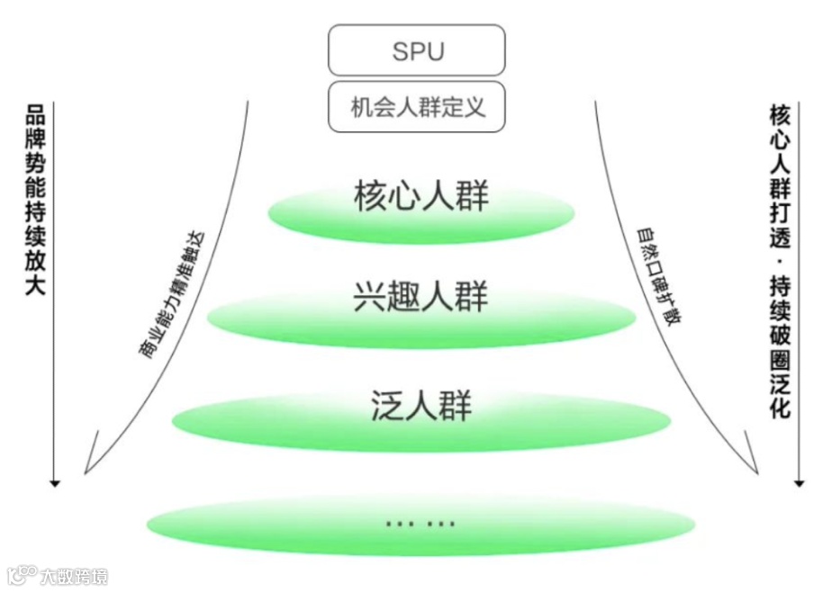 小红书的独特营销解法:人群反漏斗破圈。从核心人群到泛人群持续破圈。