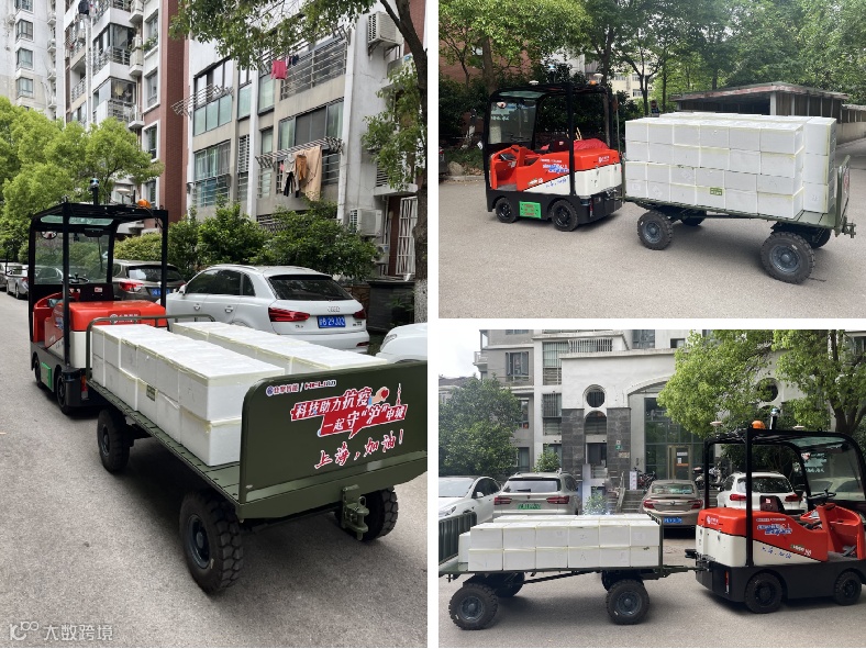 为缓解上海普陀社区人员配送压力和疫情防控无人接触等要求,4月23日中午,仓擎联合安徽合力集团(股票代码600761),在上海普陀万里街道协助下,紧急协调运输车辆,技术人员日夜兼程将全国首台大运力小区物资无人配送车从安徽合肥送至上海普陀抗疫一线。4月24日清晨,车辆到达指定地点,仓擎技术人员第一时间对小区路线进行建模,争分夺秒开展路线测试工作,仅用8个小时就完成了大华颐和华城小区配送路线设置。