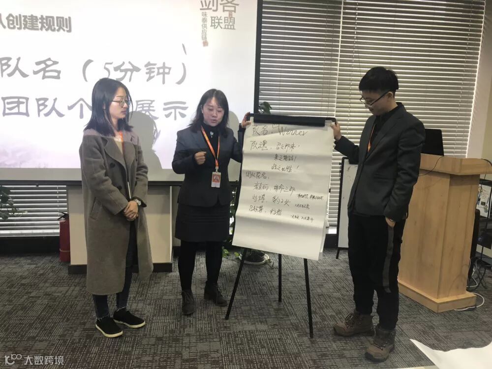 5分钟过后,每个团队上台进行风采展示和团队解说。