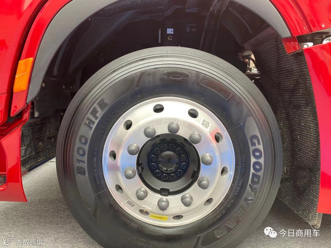 提到黄金动力链,大家就能想到潍柴,法士特,汉德桥这一经典组合,这一说法也广泛流传于商用车圈内。但是完整的动力链所对应的是,发动机,变速箱,后桥,以及轮胎,其中轮胎在动力链中所起到的作用也是至关重要,根据实验同样一台车同样的运输线路同样的驾驶员,反复实验比较,使用295/80/22.5轮胎比使用12R22.5轮胎油耗平均节省两升,同时轮胎直径的缩小轮上驱动力也会大幅提升。在德龙X6000上12R22.5轮胎已经不是主流,更多配置的是,295/80/22.5 315/70/22.5 等小直径低滚阻的轮胎。小直径的轮胎在降低车辆高度自重的同时,还能大幅的提升车辆的驱动力,并且有效的降低油耗,可谓是一举多得。在欧美国家小直径的轮胎应用已经很长时间,我国还尚在推广阶段,德龙X6000轮胎型号这一不起眼的改变正式宣告高速物流时代的开始。