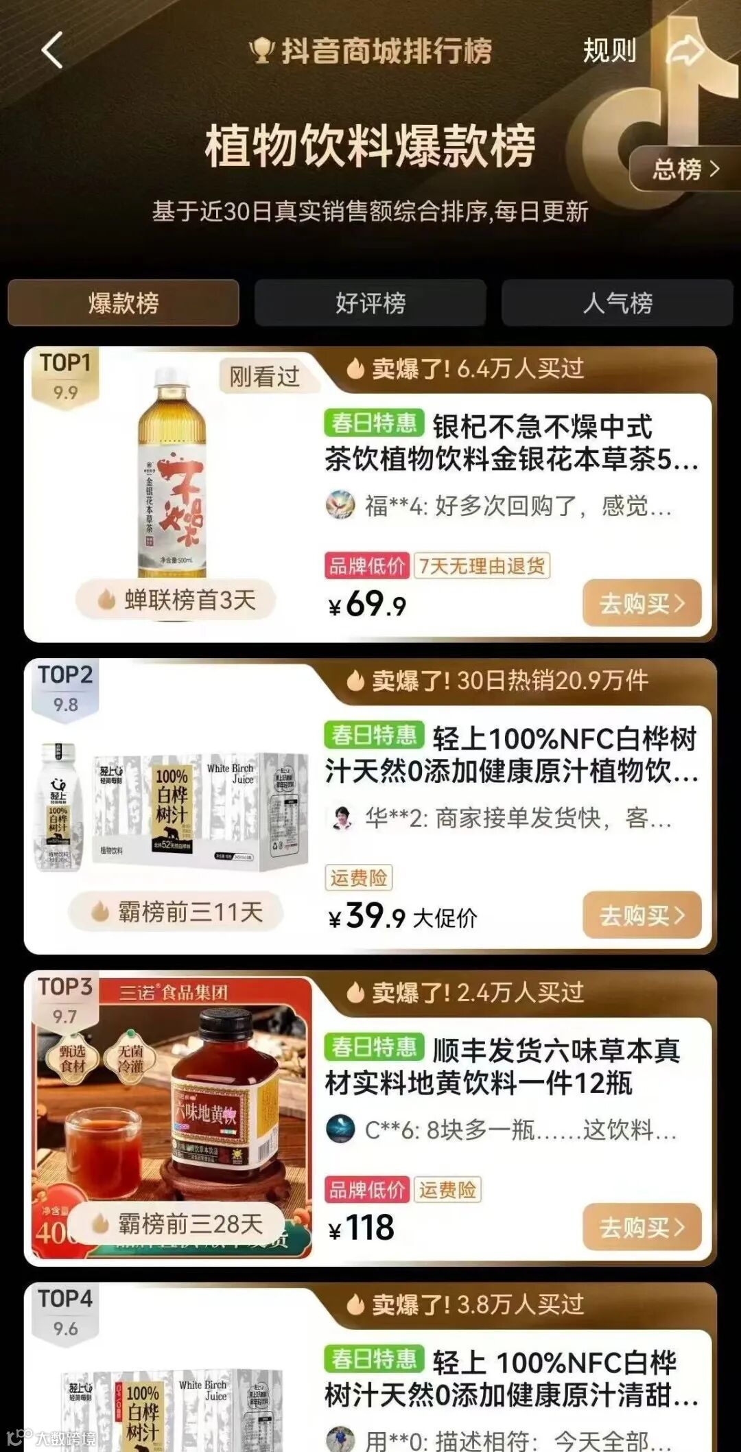 如今,“长安饮子”已不仅是抖音植物饮料榜的常驻冠军,更成为一个文化符号——#唐朝凉茶话题突破2000万播放,那些曾经只在历史书籍里出现的饮子配方,正通过一瓶瓶现代包装的凉茶,走进都市白领的办公室、健身达人的水杯、旅行者的行李箱......这或许就是传统文化最好的打开方式:既活在数据里,更活在生活中。