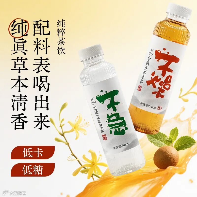需求升维:不止解渴提神,更提供“草本灭火系统”,金银花+九大本草的复合配方直击熬夜后遗症;