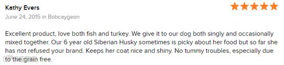 非常棒的产品,喜欢鱼和火鸡。我们将它单独给狗狗喂食,偶尔混合在一起。我们6岁的哈士奇有时会挑食,但到目前为止她还没有拒绝过纽翠斯。吃这款狗粮保持她的毛发漂亮有光泽。没有出现过肠胃问题,尤其是是因为没有谷物。