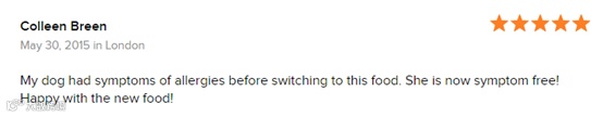 在换成这款狗粮之前,我的狗有过敏的症状。但是她现在没有过敏症状了!很满意这款新狗粮!
