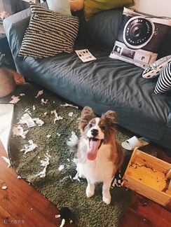 每次狗这样笑都是干坏事得逞。第一次发现这个规律,是在修图时发现它脚上的玉米粒。 把我煮的一锅玉米啃了。好气哦。