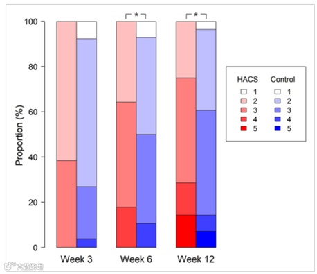 △HACS和对照侧的皮肤老化GAIS评分