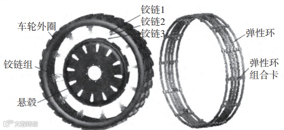 国内研发进展:北京汽车股份有限公司最早在2014年推出一款名叫N-轮的非充气轮胎,它是采用V型支撑体结构——能够提供较大的刚度。针对特种车辆的使用需求,南京航空航天大学研究出一款机械弹性的车轮:所用材质为金属材料,结构包括外圈、弹性环、轮毂以及铰链组等。其最大的特点就是具有较高弹性和较好的抗震能力。