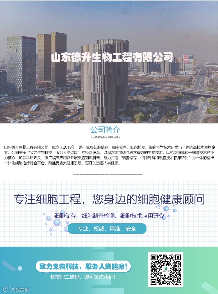 德升生物一家集细胞采集、制备、存储、检测及细胞技术研发为一体的高新技术企业。拥有20多年细胞技术行业临床实践经验,主要提供干细胞、免疫细胞技术开发和应用、基因检测、面部细胞再生因子等保健医疗服务。