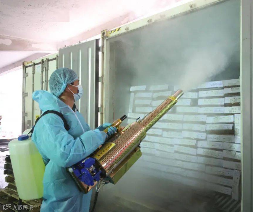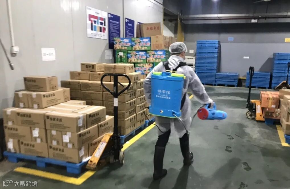 同时,每一件货物也必须在验收处将外箱的每一面都细心消毒后,才能进入仓库。