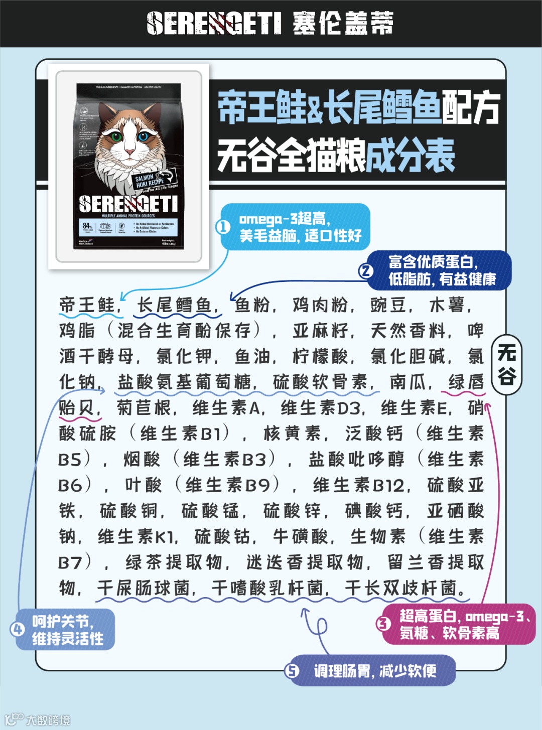 塞伦盖蒂三文鱼长尾鳕鱼猫粮,用帝王鲑+长尾鳕鱼+绿唇贻贝的黄金三角组合,把美味和营养都拿捏得死死的!