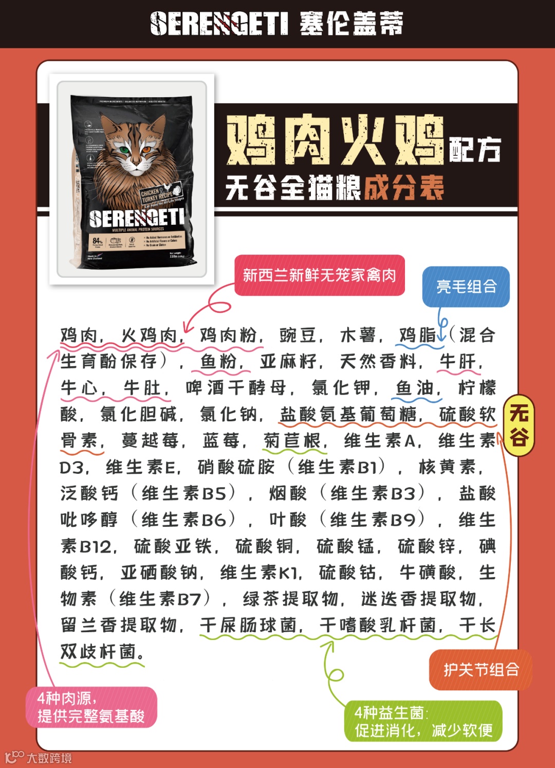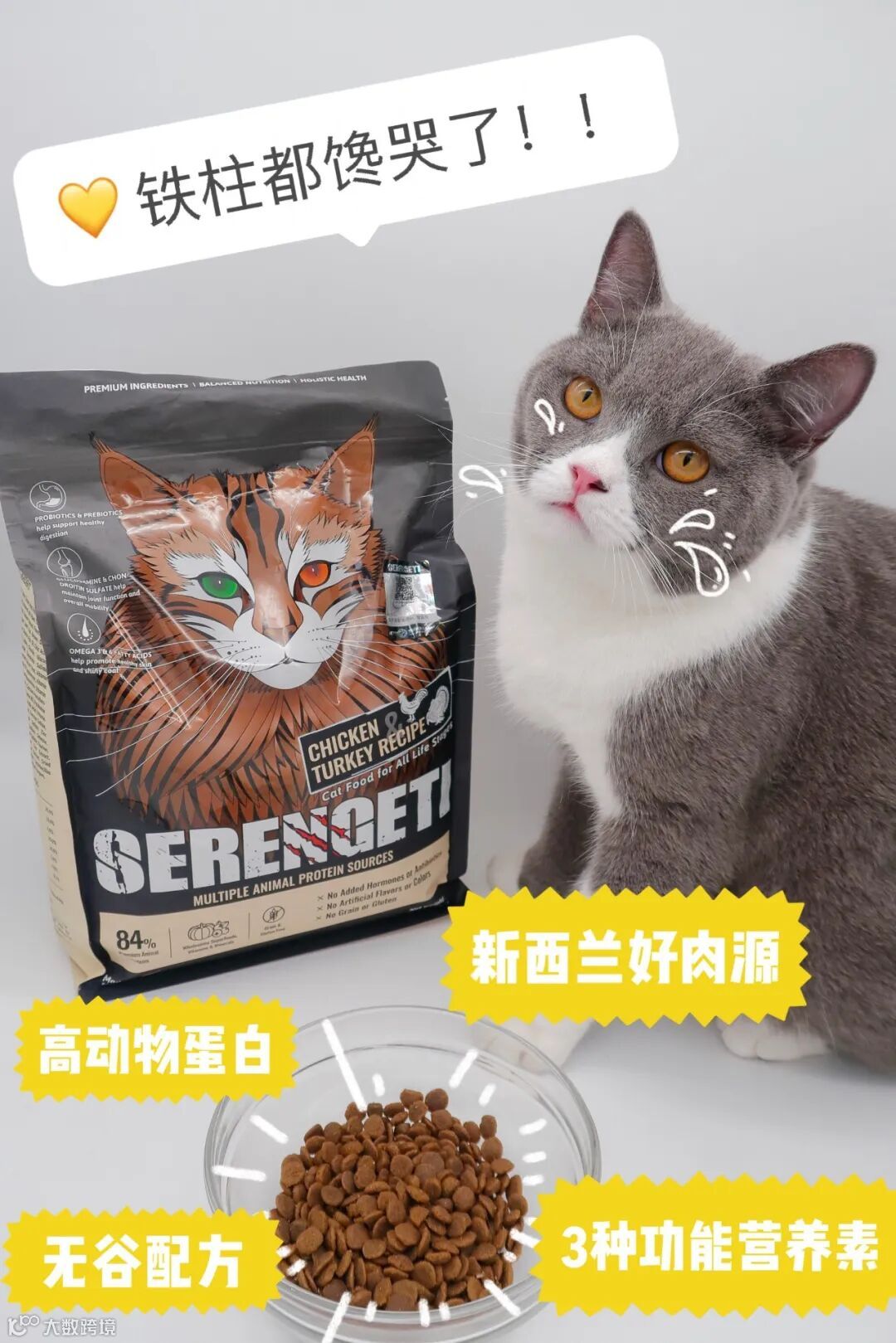 新西兰顶级纯粹好肉+3大功能营养素+高营养,塞伦盖蒂完美诠释了什么叫纯粹好肉粮,不愧是本选粮小天才看中的宝藏猫粮!