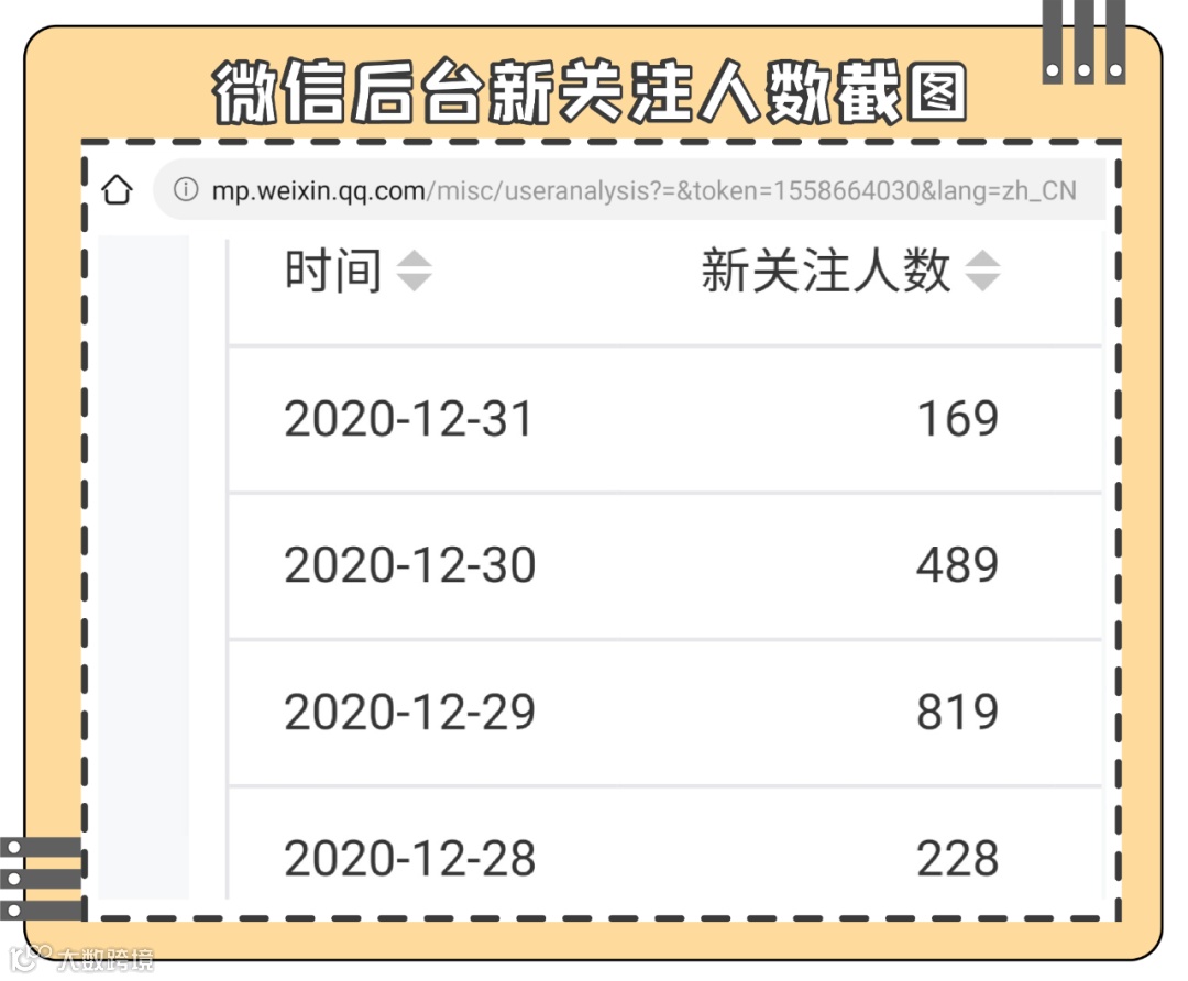 微信后台新关注人数截图