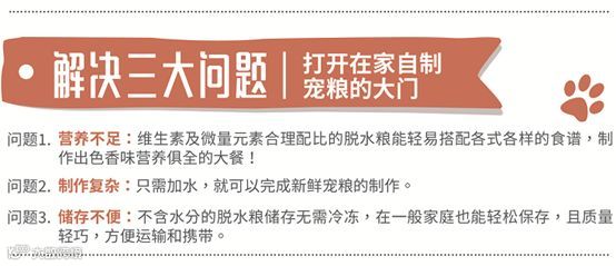 一直以来,自制宠粮存在着许多问题,让很多铲屎官望而却步,但是诚实厨房解决了这些问题,为我们打开了在家自制宠粮的大门: