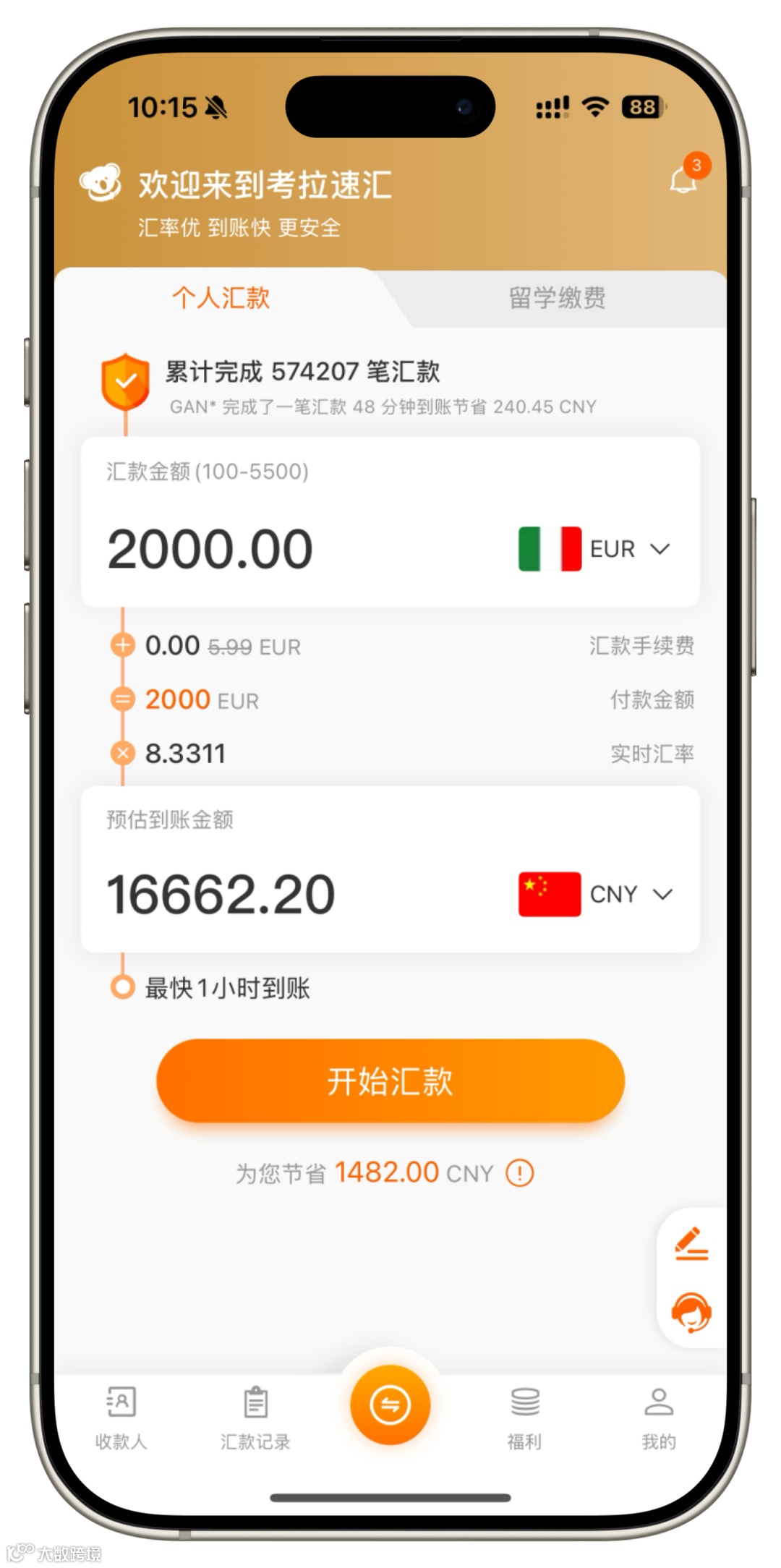 完成上述APP内设置后,请退出并重新登录Poste Italiane APP,确保配置生效。接下来即可通过考拉速汇平台发起汇款。