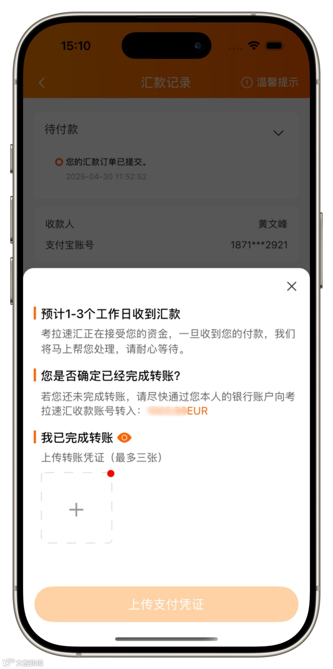 转账完成后,按要求上传支付成功截图或交易凭证,以便系统及时处理您的汇款请求。