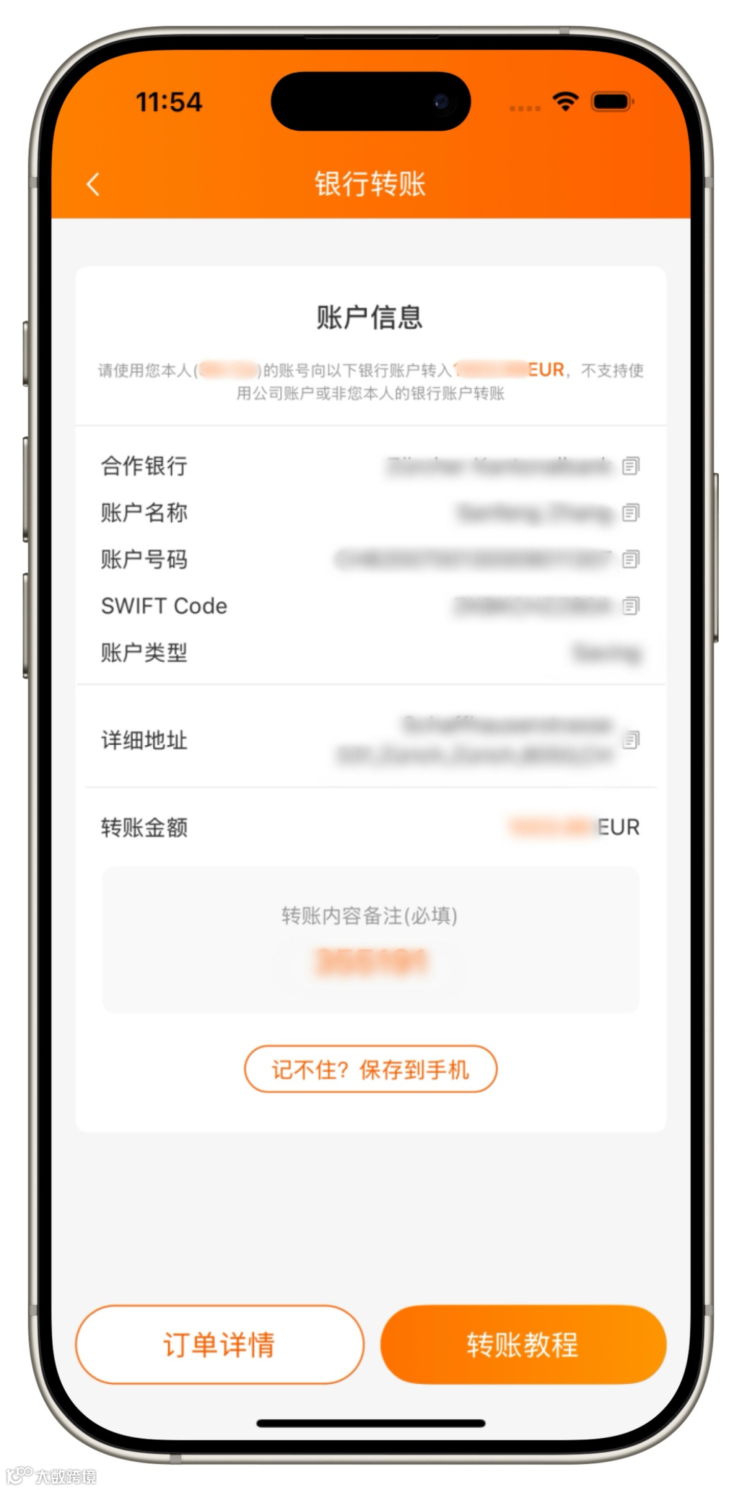 核对汇款信息无误后,选择已设置好的黑卡账户向考拉指定账户完成转账。
