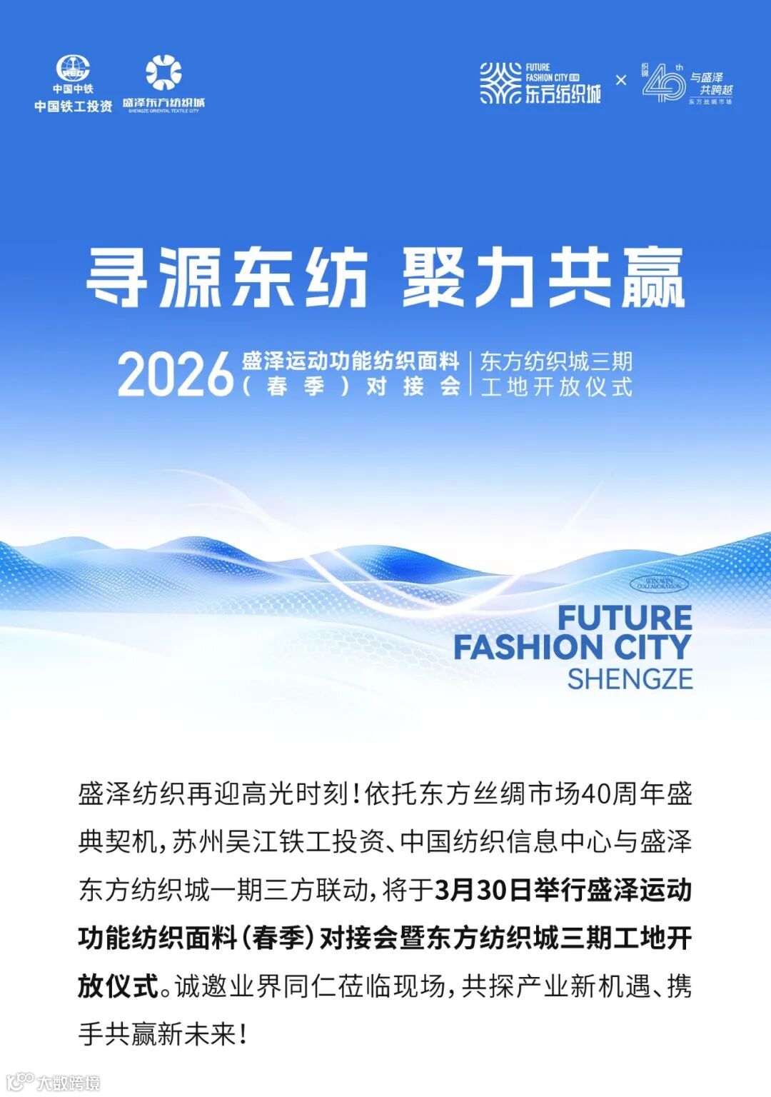 链接资源,助力腾飞 | 2026盛泽运动功能纺织面料(春季)对接会暨东方纺织城三期工地开放仪式