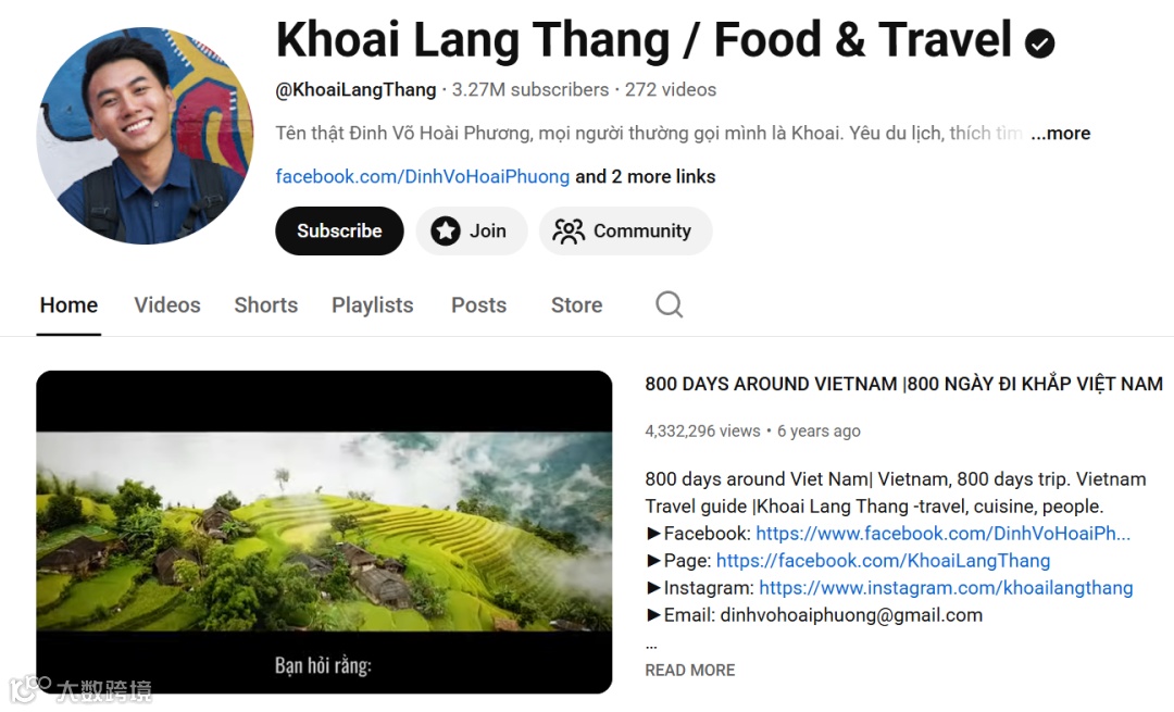 Khoai Lang Thang和Chan La Ca以人文旅行内容俘获都市精英,51.6万高净值粉丝。