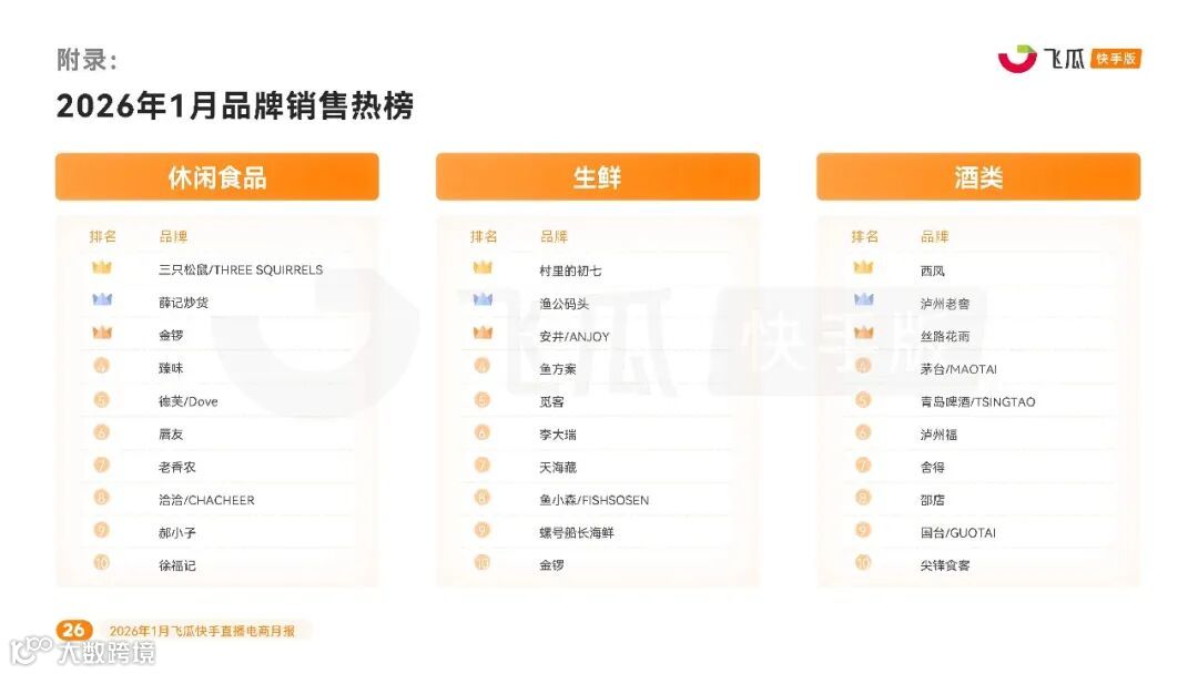 坚果炒货是这个月休闲食品里的绝对主角,环比 12 月销售热度增长 286.58%,推广热度增长 32.96%。在坚果炒货的销售结构里,坚果礼盒礼包占比达到 55.1%,其直播销售额环比更是暴涨 1866.24%。瓜子、夏威夷果、松子等单品也有不俗表现,健康成分、颗粒饱满、品牌背书等成为用户选购时的关键考量,家庭囤货和年节礼赠是最主要的消费场景。
