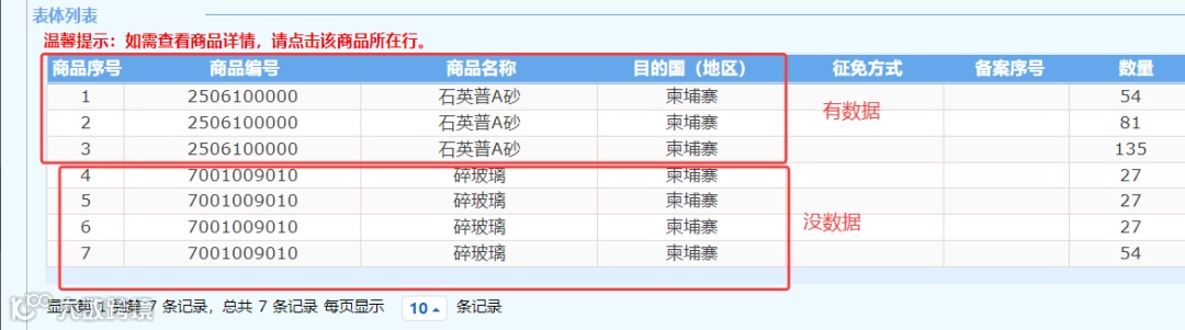 口岸清关行一票出口报关单,申请了6项,2种商品编码,A+B, 但电子税务局只有A类商品数据,没B类商品数据