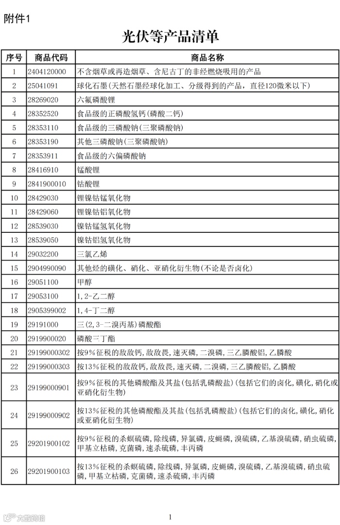 1. 光伏及磷化工类产品:2026年4月1日起全额取消出口退税