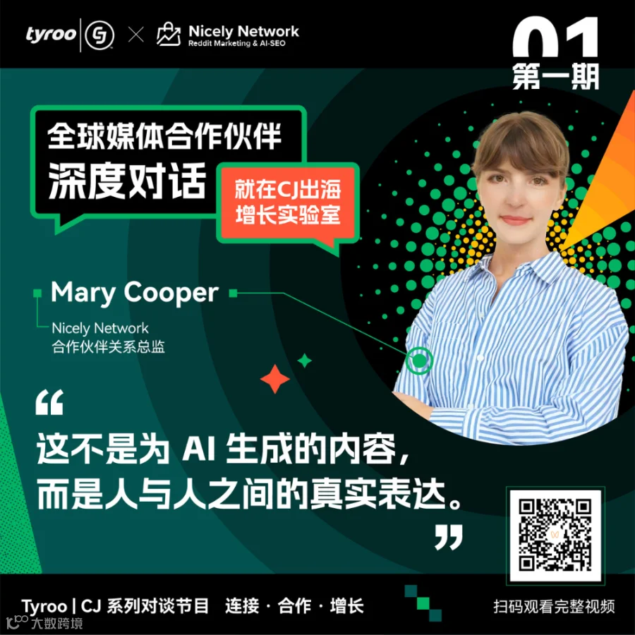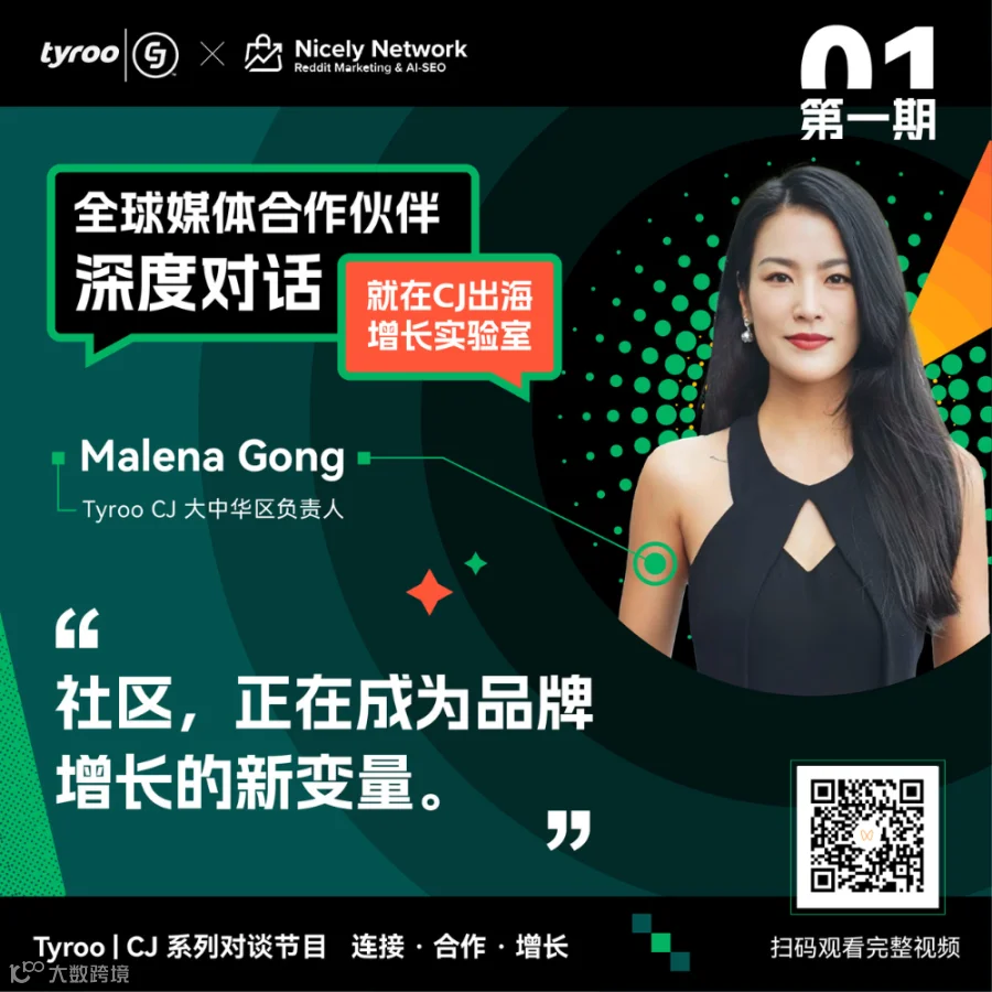 在本期 CJ出海增长实验室 中,Tyroo|CJ 大中华区负责人 Malena Gong 与 Nicely Network 合作伙伴关系总监 Mary Cooper 围绕 AI 时代下社区内容、品牌可见度与增长机会展开了一场深度对谈。