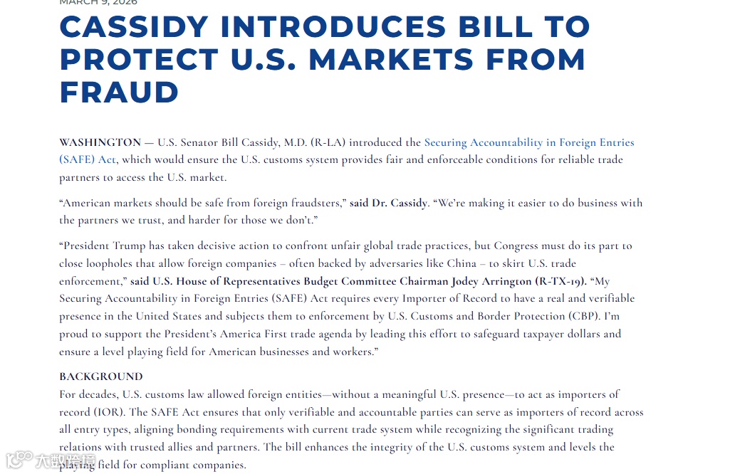 行业声音指出,从5H查验常态化到IOR清洗,再到SAFE法案的推进,美国针对进口商资质的合规审查已形成闭环。