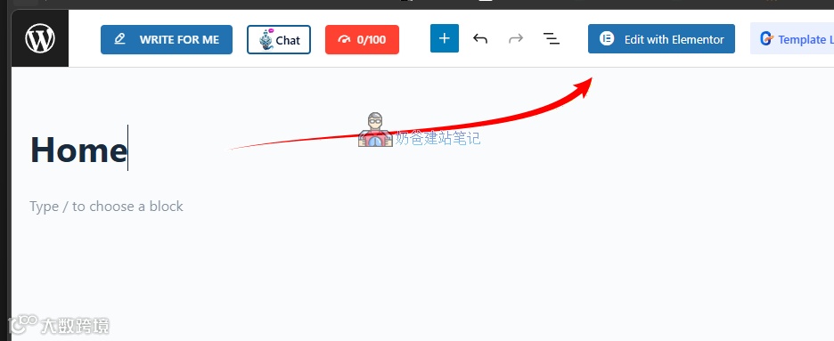 输入页面标题,例如Home,然后点击Edit with Elementor;