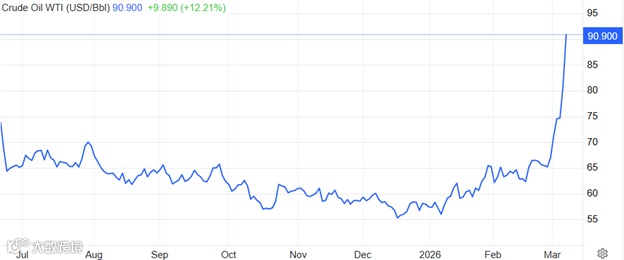 在海峡通行受阻、周边设施不时遭袭的情况下,市场几乎是本能地给油价叠加了显著的地缘风险溢价,不再单纯盯着供需平衡表。国际原油(布伦特)自战争升级以来录得两位数的百分比涨幅,周度涨幅达到几十年难见的水平,短期价格牢牢站在每桶 70 美元以上,整个远期曲线整体抬升——意味着市场认为“高一点的油价会维持一段时间”,而不是一两天的情绪波动。
