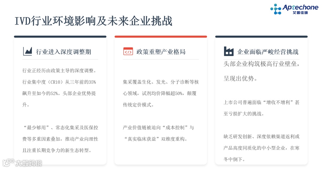 产业正在进入深度调整期,呈现出两极分化趋势(见图2)。诸如迈瑞、安图的头部玩家,凭借全自动流水线、AI智能审核系统等,形成整体解决方案,构建出极高的行业竞争壁垒。