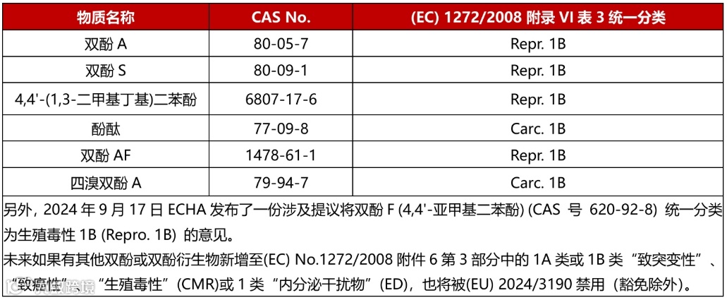 欧盟发布(EU) 2024/3190双酚禁令的实施指南文件