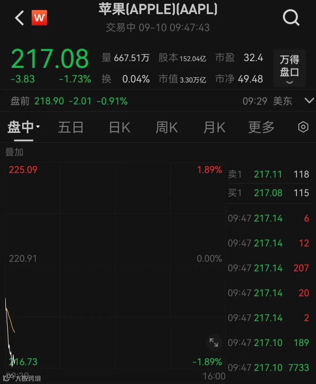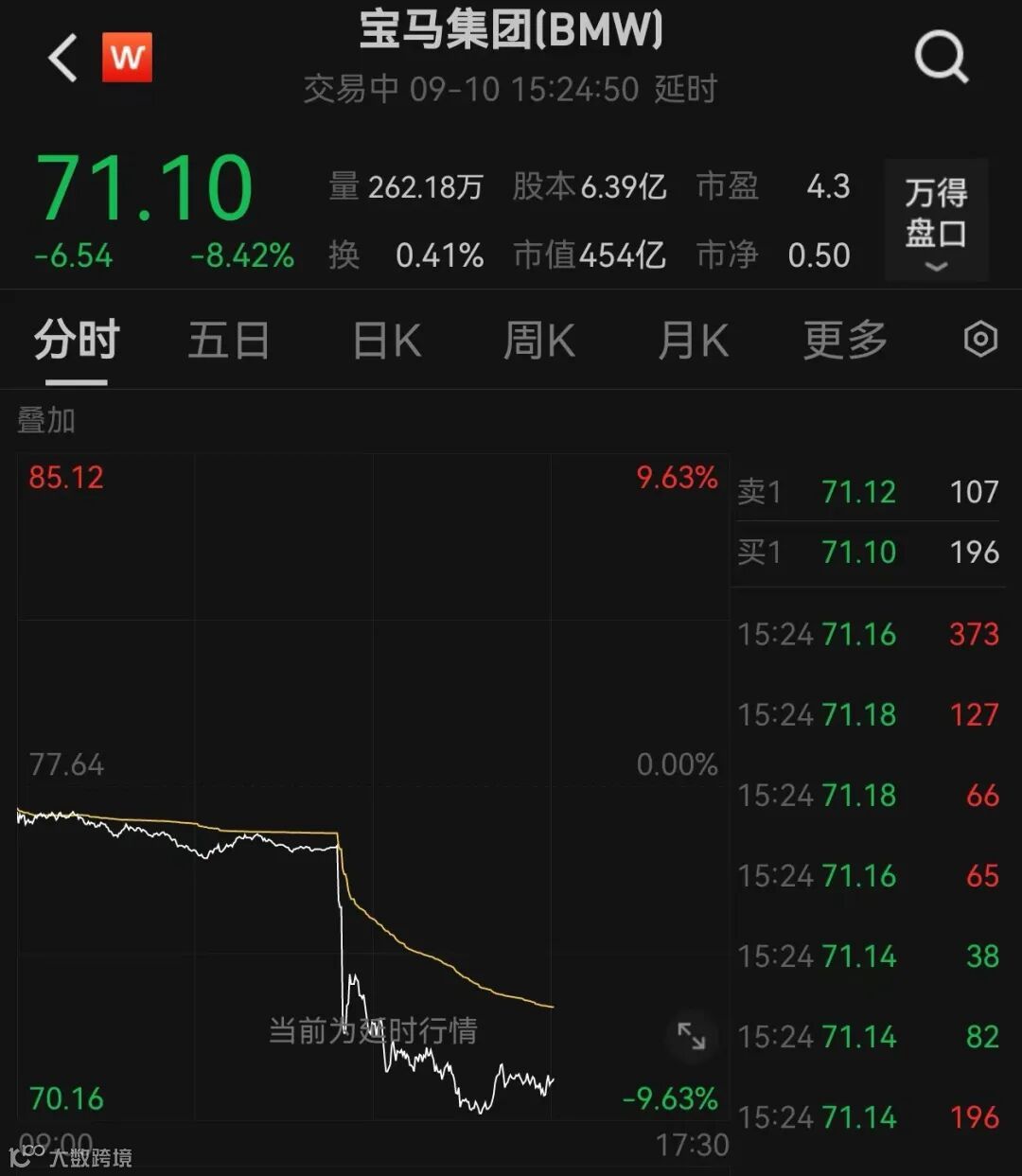 宝马盘中闪崩