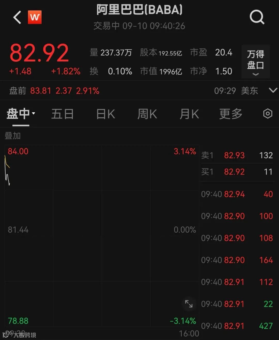 阿里巴巴跳空高开