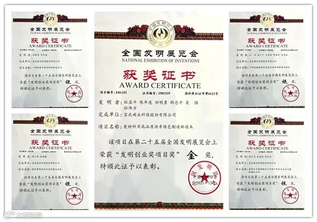 图为“一金四银”证书