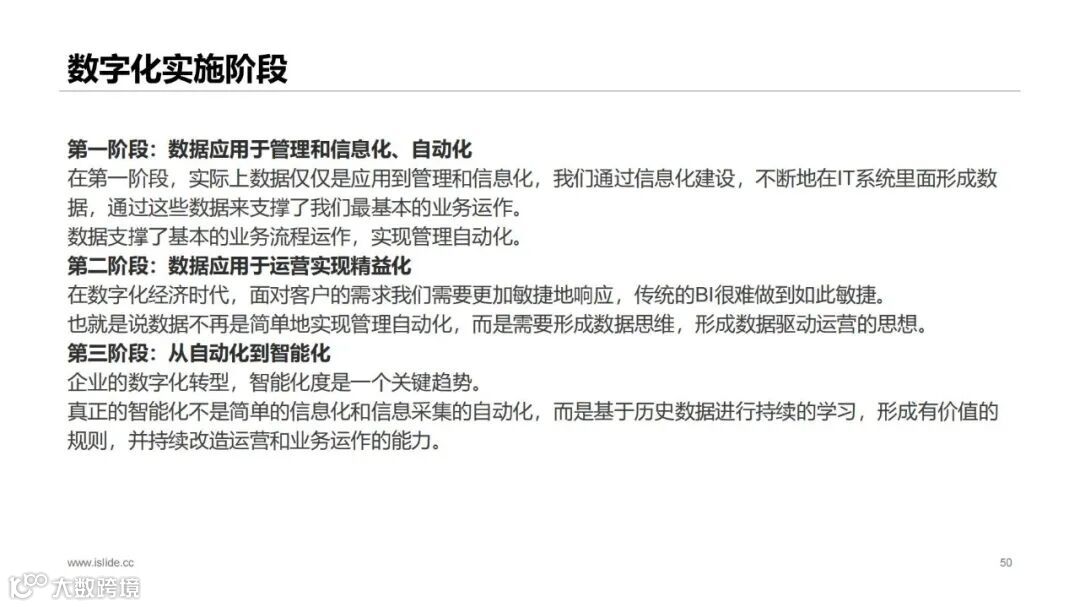 通过本期晚间课堂的学习,我认为现阶段宝武碳业基本实现了管理的信息化,在业务系统中形成数据,并通过这些数据支撑基本的业务运作。部分实现了运营的精益化,利用数据深刻了解客户需求,开拓新的营销模式。未来我们还要走从自动化到智能化的数字化转型之路。