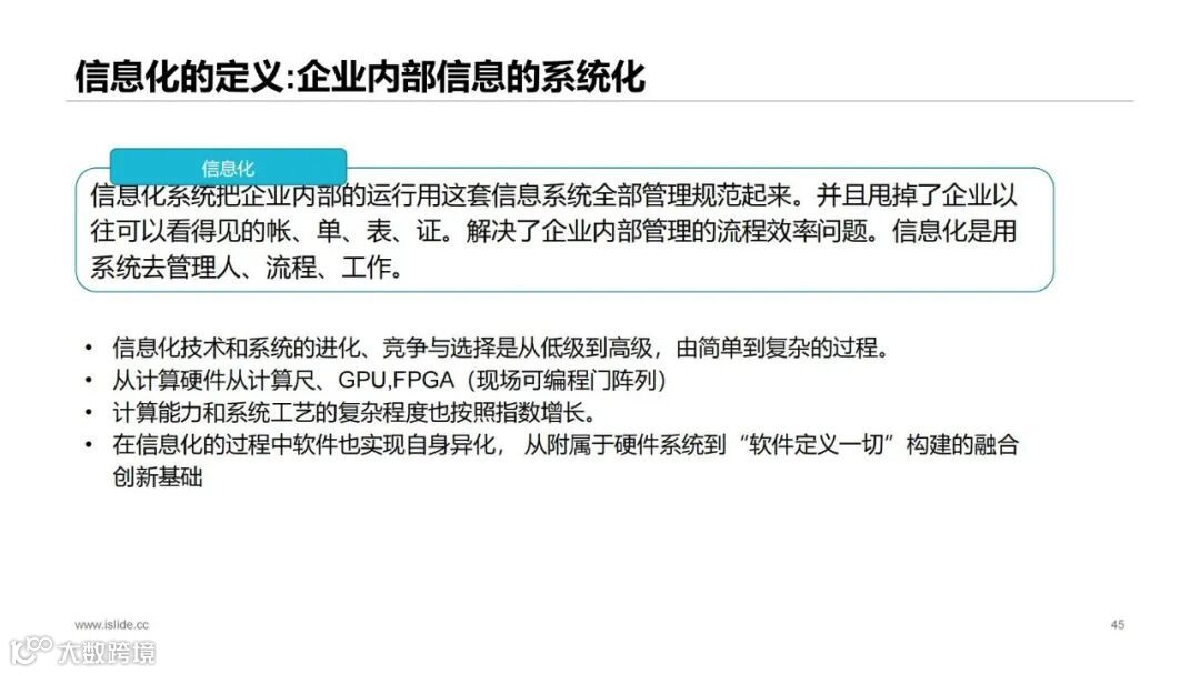 主讲嘉宾陈江宁再次以“数字化转型与思考”为题,紧接上一期智能制造的议题,继续讲述工业互联网的定义和内涵,信息化、数字化和企业数字化转型的实施方式,以及这三者间的关系。随后逐一分析了数字化转型带来的十大变革趋势。