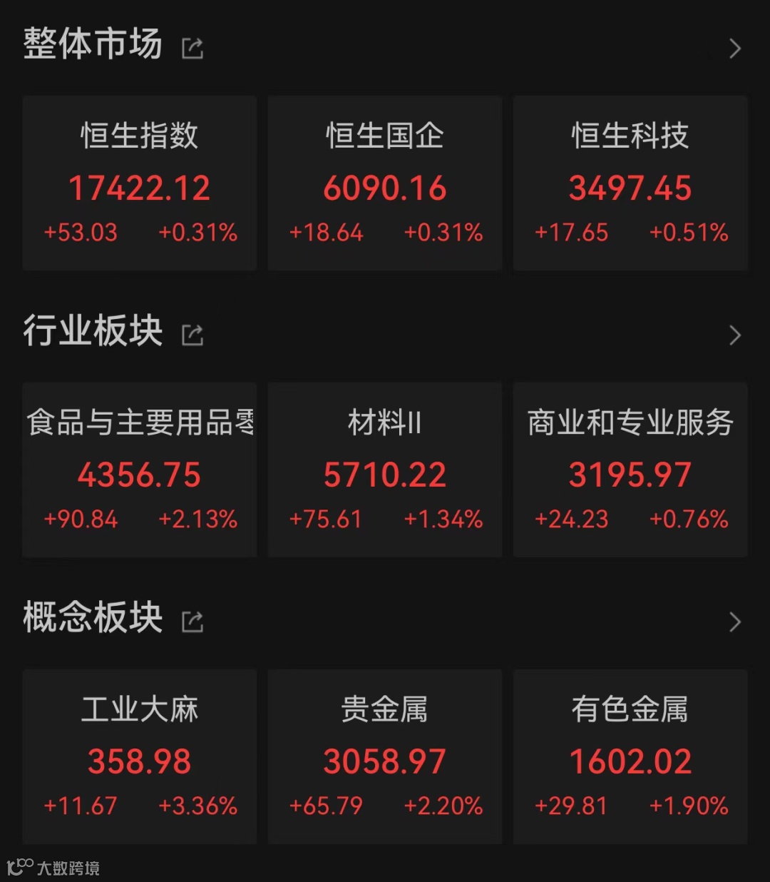 港股市场全线反弹
