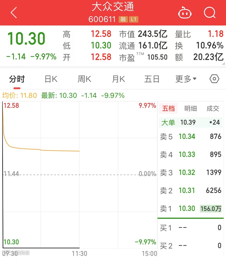 里直线跳水,其中,大众交通、科森科技均迎来“天地板”。