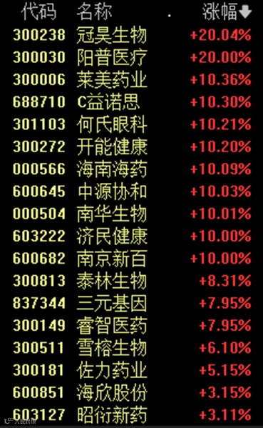 今天上午,医药股表现活跃,