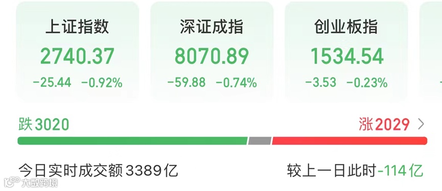 截至上午收盘,上证指数下跌0.92%,深证成指下跌0.74%,创业板指下跌0.23%。