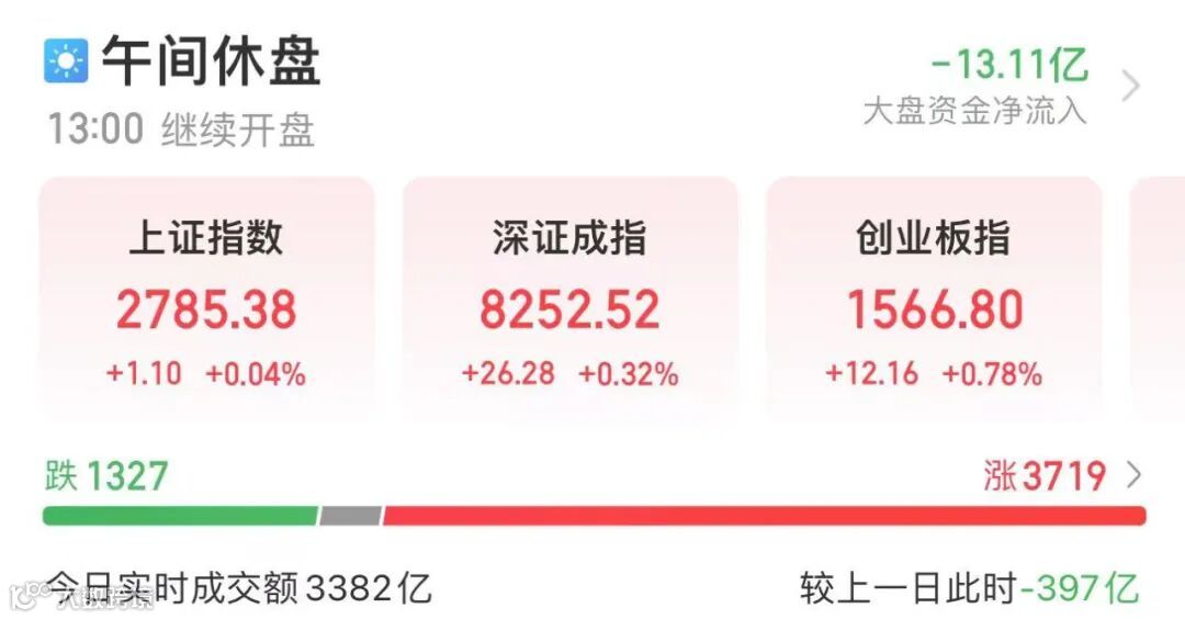 A股上午反弹,截至收盘,上证指数上涨0.04%,深证成指上涨0.32%,创业板指上涨0.78%。